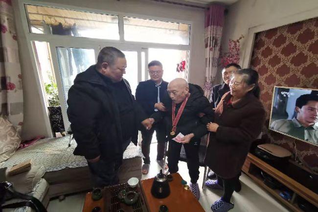 走訪中,二一三隊(duì)離退休科科長(zhǎng)王高陽(yáng)一行代表隊(duì)黨委,先后前往重慶、西安,向我隊(duì)抗美援朝志愿軍老戰(zhàn)士李斌、馬驥致以親切的問候和崇高的敬意。送上了慰問金和慰問品,詳細(xì)詢問了解老人的身體狀況、政策保障落實(shí)和當(dāng)前生活情況,向他們傳達(dá)了黨和國(guó)家對(duì)志愿軍老戰(zhàn)士的關(guān)愛,并為老同志戴上了承載無上榮光的“中國(guó)人民志愿軍抗美援朝出國(guó)作戰(zhàn)70周年”紀(jì)念章,衷心感謝他們?yōu)榭姑涝?、保家衛(wèi)國(guó)做出的貢獻(xiàn),祝福老同志健康長(zhǎng)壽。(通訊員:劉雯)
