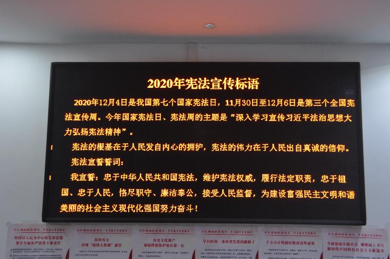 創(chuàng)新宣傳形式,營造濃厚氛圍。宣傳周內(nèi),我隊通過制作張貼主題海報、電子屏播放宣傳標語、微信群轉(zhuǎn)發(fā)法治動漫微視頻優(yōu)秀作品等“可看、可聽、可學(xué)”的方式,向全隊干部職工宣傳涵蓋12.4全國法制宣傳日和宣傳周的由來,我國憲法規(guī)定的重點內(nèi)容、發(fā)展歷史及其重大歷史意義,習(xí)近平法治思想的現(xiàn)實意義和深刻內(nèi)涵等內(nèi)容,讓憲法宣傳入腦入心。
