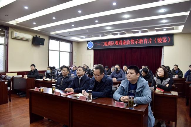 《鏡鑒》主要通過貪腐案件中涉事官員的懺悔、案件情景再現等形式深刻闡述了違紀干部腐化墮落的思想過程和行為軌跡。一幅幅畫面,觸目驚心;一件件案例,發(fā)人深省。為全體干部上了一堂生動的警示教育課,教育引導大家要以案為鑒、防微杜漸、警鐘常鳴,筑牢拒腐防變思想防線,始終做到知敬畏、存戒懼、守底線。進一步推進全面從嚴治黨向縱深發(fā)展,努力營造風清氣正的政治生態(tài)和擔當作為的干事創(chuàng)業(yè)環(huán)境,為地勘事業(yè)轉型發(fā)展率先蹚出一條新路來提供堅強政治和紀律保障。