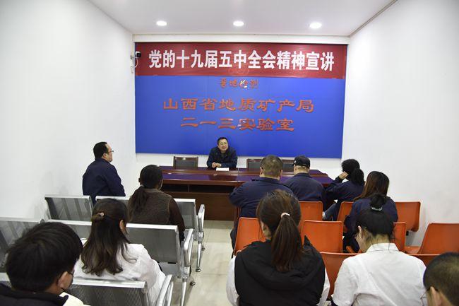 期間,隊長姚文兵、隊黨委書記趙江濤、隊總工程師呂福清、副隊長馬亮分別深入聯(lián)系黨支部,結(jié)合《黨的十九屆五中全會<建議>學(xué)習(xí)輔導(dǎo)百問》和地勘工作實際,圍繞黨的十九屆五中全會的基本情況及主要精神;深刻認識我國進入新發(fā)展階段的重大意義、有利條件和重要特征;準確把握2035年遠景目標(biāo)和“十四五”時期我國發(fā)展的指導(dǎo)方針、主要目標(biāo)、重點任務(wù);堅持黨的全面領(lǐng)導(dǎo),為實現(xiàn)“十四五”規(guī)劃和2035年遠景目標(biāo)而團結(jié)奮斗等四個方面向廣大黨員干部職工作“黨的十九屆五中全會精神”專題宣講。