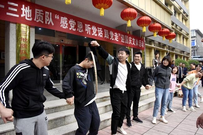 9月30日,隊(duì)工會(huì)組織全隊(duì)在職職工舉辦了“聽黨話、感黨恩、跟黨走”主題趣味運(yùn)動(dòng)會(huì)。本次運(yùn)動(dòng)會(huì)共設(shè)“一圈到底”、“荊棘取水”、“劃拳接力賽”、“指壓板傳球”等四個(gè)趣味項(xiàng)目,來(lái)自8支代表隊(duì)的150余名職工參加了角逐。比賽項(xiàng)目充滿趣味性、挑戰(zhàn)性和娛樂(lè)性,每輪角逐精彩激烈、妙趣橫生。比賽現(xiàn)場(chǎng),隊(duì)員們彼此配合默契、精彩不斷,笑聲、加油聲、鼓掌聲此起彼伏。充分展現(xiàn)了地勘人團(tuán)結(jié)拼博、不畏艱難、積極奮進(jìn)的良好精神狀態(tài)。