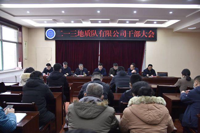 2022年1月26日,二一三地質隊有限公司召開干部大會。地質集團紀委書記張勇,局黨群工作處副處級干部楊鵬,二一三地質隊有限公司領導班子成員及中層干部參加了會議。