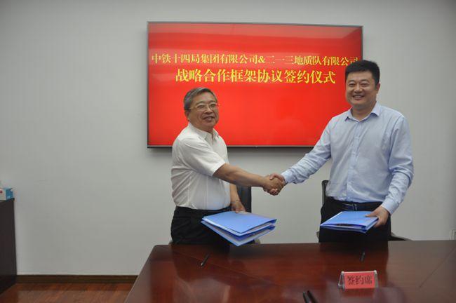 5月20日,中鐵十四局集團有限公司與二一三地質(zhì)隊有限公司簽署戰(zhàn)略合作框架協(xié)議。中鐵十四局集團有限公司中原區(qū)域總部副總經(jīng)理張波,晉南經(jīng)營部部長陳新瑞,臨汾地區(qū)項目負責(zé)人劉沖,二一三隊有限公司黨委書記、董事長姚文兵,副書記、副董事長、總經(jīng)理趙江濤及公司有關(guān)經(jīng)營單位負責(zé)人參加了簽約儀式。