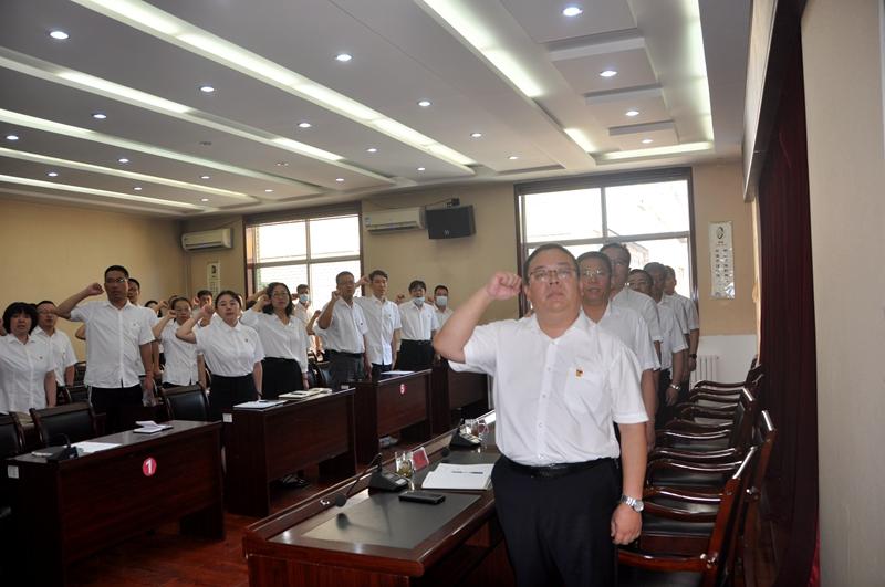 大會在雄壯的國歌聲中拉開帷幕。會議傳達了習(xí)近平總書記考察調(diào)研山西重要講話精神。三名新黨員及全體老黨員高舉右拳,面對鮮紅的黨旗莊嚴宣誓,錚錚誓言,不僅表達作為共產(chǎn)黨員的責(zé)任與擔(dān)當(dāng),更是許下了對黨忠誠、永不叛黨的堅定承諾。