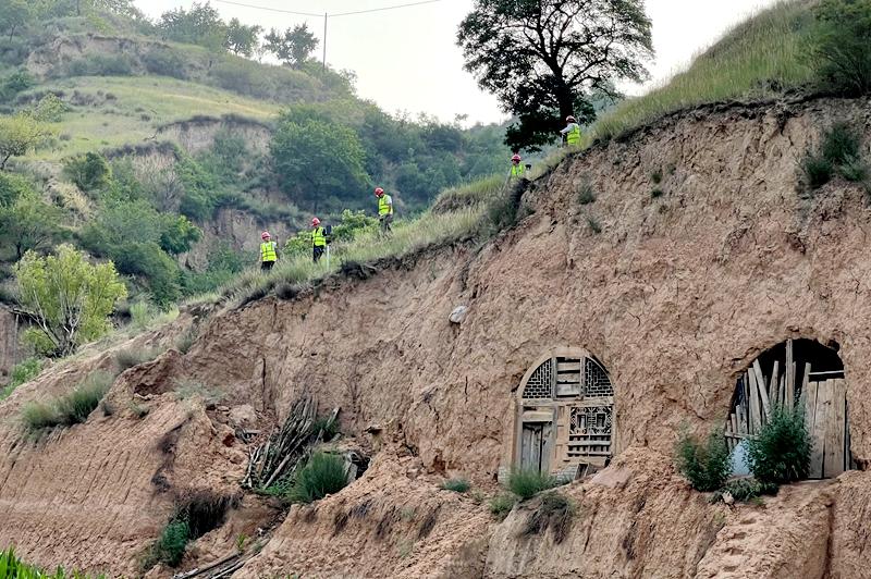 本次演練模擬汛期連續(xù)強降雨引發(fā)隰縣黃土鎮(zhèn)下莊村一起黃土崩塌地質(zhì)災害,窯洞被埋、人員被困。演練期間,接到隰縣自然資源局通知后,二一三地質(zhì)隊有限公司迅速派出由10人組成的應急分隊趕赴現(xiàn)場。到達現(xiàn)場后,應急分隊第一時間采用無人機航拍,確定了災害發(fā)生地的地質(zhì)環(huán)境條件、誘發(fā)因素和災害特征以及現(xiàn)場地質(zhì)災害的分布、規(guī)模、受災范圍和影響范圍,并安排專人對隱患點進行全天候監(jiān)測,獲取隱患點實時數(shù)據(jù)。技術專家結(jié)合航拍影像和監(jiān)測資料,對地質(zhì)災害的發(fā)展趨勢、影響范圍進行研判,提出了切實有效的防治措施和建議。