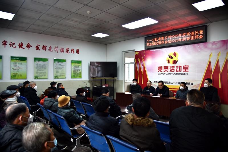 在新春佳節(jié)來臨之際,1月17日,二一三地質(zhì)隊有限公司召開了離退休老同志情況通報會暨2023年新春團(tuán)拜會。全體班子成員與離退休老干部、老黨員代表歡聚一堂,喜迎新春。公司黨委書記、董事長趙江濤主持會議。