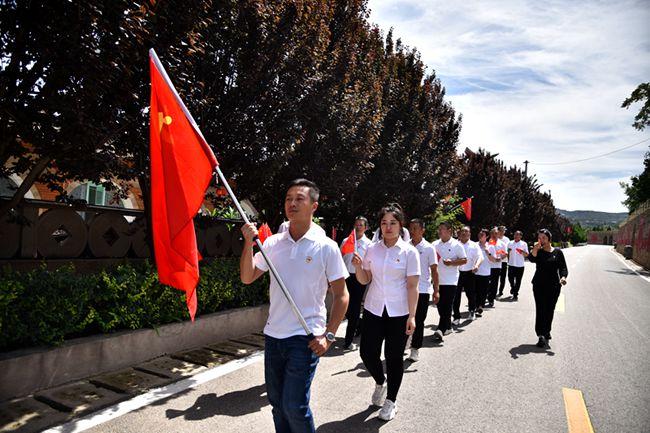 重走東征之路,再憶崢嶸歲月。驕陽(yáng)似火,烈日當(dāng)空。在黨旗的引領(lǐng)下,全體黨員整齊列隊(duì),邁著矯健步伐前往東征村,追尋紅軍東征足跡,感受革命艱辛,深刻體會(huì)紅軍戰(zhàn)士鋼鐵般的意志和不畏犧牲的革命精神。