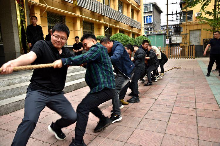 在拔河賽場上,以分工會為單位的6支參賽隊伍士氣高昂、配合默契,秉持“友誼第一、比賽第二”的原則,展開了激烈地角逐。隨著一聲令下,場上場下都瞬間充滿了斗志,“加油!加油!”的呼聲震耳欲聾。