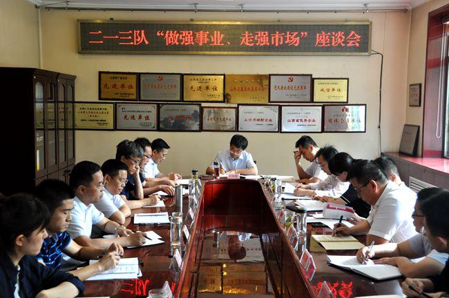 座談會(huì)上,彭東曉局長(zhǎng)對(duì)局黨委提出的“支撐服務(wù)”工作定位和“做強(qiáng)事業(yè) 走強(qiáng)市場(chǎng)”的業(yè)務(wù)布局作了解讀,并闡釋了此次調(diào)研的目的和意義。姚文兵隊(duì)長(zhǎng)匯報(bào)了二一三隊(duì)經(jīng)營(yíng)目標(biāo)完成情況和“做強(qiáng)事業(yè)、走強(qiáng)市場(chǎng)”情況,與會(huì)人員從優(yōu)化產(chǎn)業(yè)布局、拓展服務(wù)領(lǐng)域、健全激勵(lì)機(jī)制、規(guī)范內(nèi)部管理、加強(qiáng)隊(duì)伍建設(shè)、強(qiáng)化科技創(chuàng)新等方面談了自己的看法。