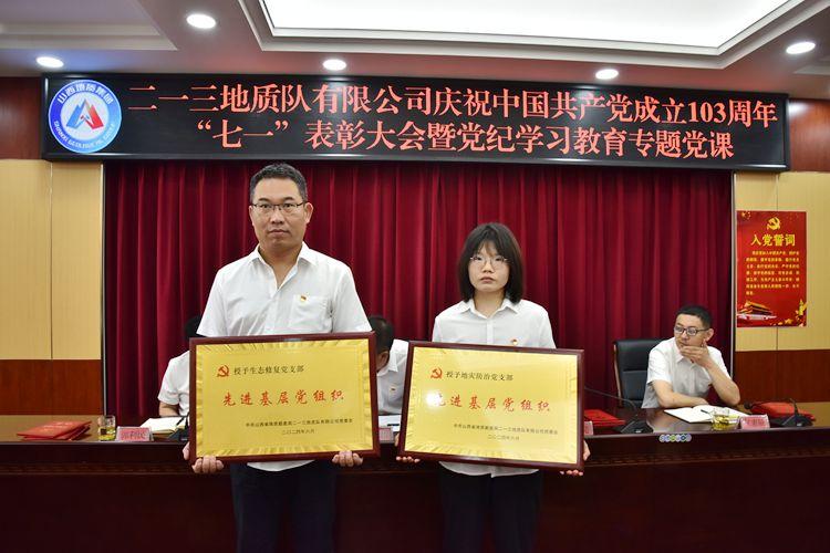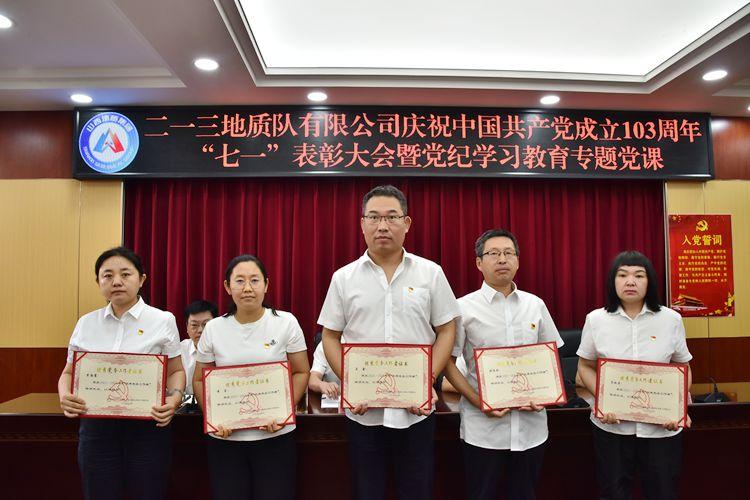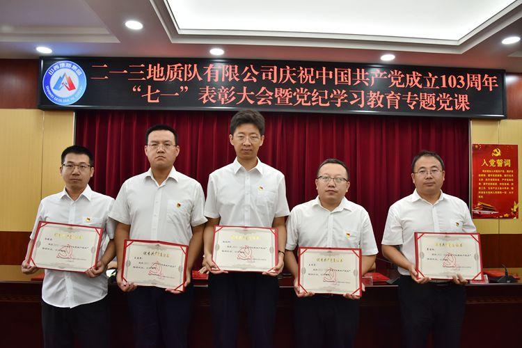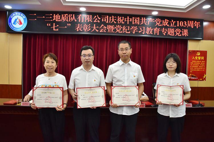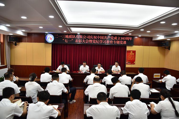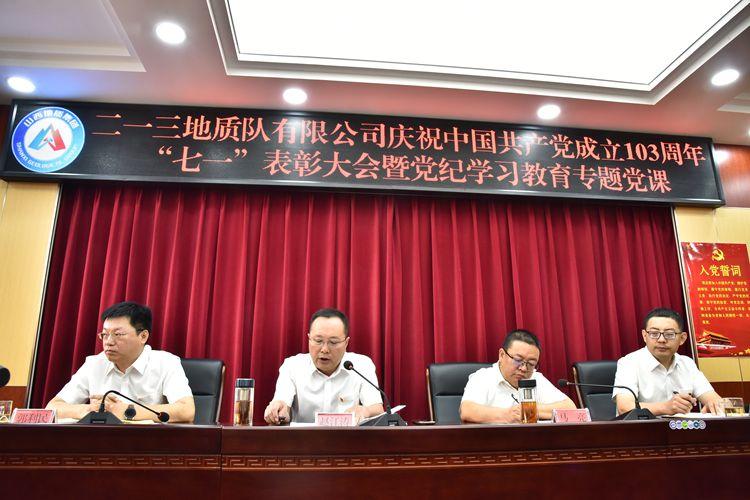 為慶祝中國共產(chǎn)黨成立103周年,進(jìn)一步激發(fā)基層黨組織活力,激勵(lì)黨員干部動力,推進(jìn)黨紀(jì)學(xué)習(xí)教育走深走實(shí),鍛造過硬工作作風(fēng),推動公司工作再上新臺階。6月26日上午,二一三地質(zhì)隊(duì)有限公司召開慶祝中國共產(chǎn)黨成立103周年“七一”表彰大會暨黨紀(jì)學(xué)習(xí)教育專題黨課。公司黨委書記、董事長趙江濤講授黨紀(jì)學(xué)習(xí)教育專題黨課。公司黨委副書記、副董事長、總經(jīng)理馬亮主持會議。公司其他班子成員、在職黨員干部及部分離退休老黨員共50余人參加會議。