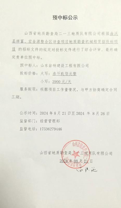曲沃縣祥富、宏金源整合區(qū)詳查項(xiàng)目地質(zhì)勘查機(jī)械租賃招投標(biāo)項(xiàng)目