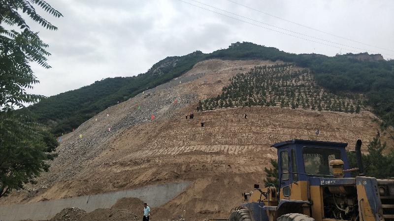 自2016年起,二一三地質(zhì)隊(duì)有限公司充分利用自身技術(shù)優(yōu)勢(shì),加快推進(jìn)產(chǎn)業(yè)結(jié)構(gòu)調(diào)整,找準(zhǔn)地質(zhì)工作與生態(tài)文明的契合點(diǎn),將水文地質(zhì)、工程地質(zhì)的優(yōu)勢(shì)力量逐步向服務(wù)生態(tài)文明建設(shè)的工作集中,圍繞巖石覆綠技術(shù),開展創(chuàng)新研究工作,與三峽大學(xué)、山西師范大學(xué)生物科學(xué)學(xué)院等多所科研院校合作,結(jié)合山西實(shí)際,因地制宜,改良CBS植被混凝土生態(tài)修復(fù)技術(shù)。該技術(shù)主要針對(duì)的就是高陡巖石邊坡,植被難以生長的難題,通過清除坡面危巖體,安裝鋪設(shè)錨釘和鍍鋅鐵絲網(wǎng),噴射由砂壤土、水泥、有機(jī)質(zhì)和綠化添加劑混合而成的植被混凝土,實(shí)現(xiàn)“消除地質(zhì)災(zāi)害隱患、恢復(fù)治理地貌景觀”的生態(tài)修復(fù)理念。