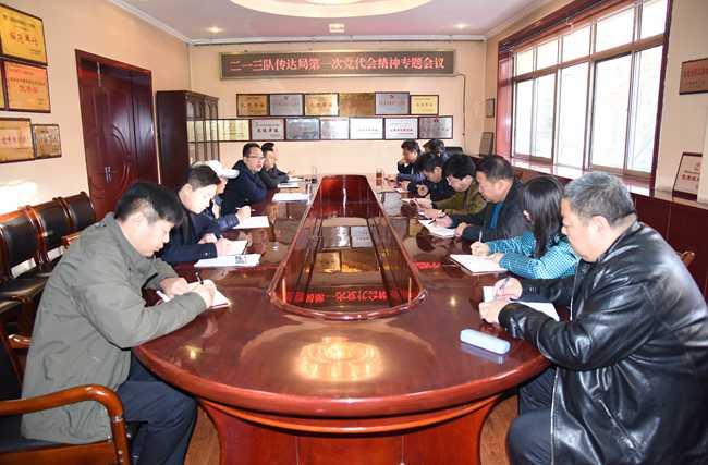 12月6日上午,二一三隊(duì)召開會(huì)議,傳達(dá)學(xué)習(xí)局第一次黨代會(huì)精神,隊(duì)領(lǐng)導(dǎo)班子成員、隊(duì)屬各黨支部書記參加會(huì)議,隊(duì)黨委副書記趙江濤主持。
