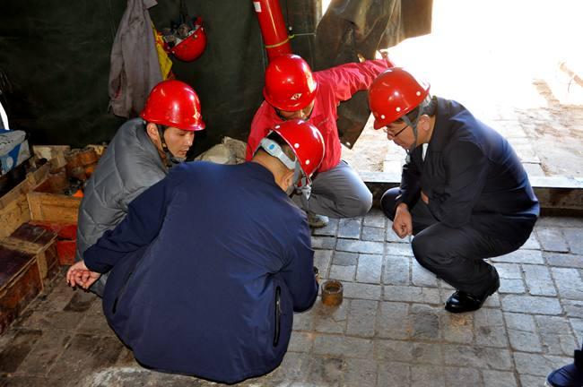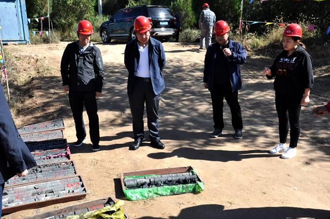 在施工現(xiàn)場,杜玉河隊長一行實地查看了工程施工和巖心鉆機使用情況,詳細了解了工程概況、施工進展等情況,認真檢查了巖心情況。隨后,杜玉河隊長一行與項目有關人員召開了座談會。