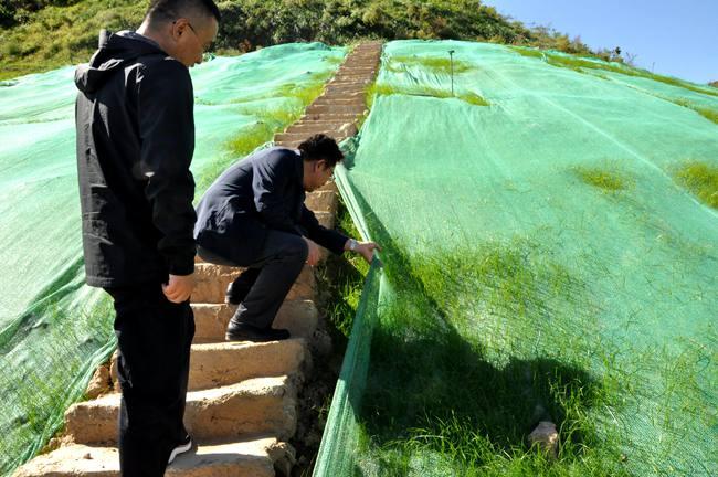 下午,杜玉河隊長一行前往龍祠泉石灰?guī)r開采區(qū)礦山地質環(huán)境治理工程的施工現(xiàn)場查看了石渣土坡生態(tài)修復新技術的應用情況。