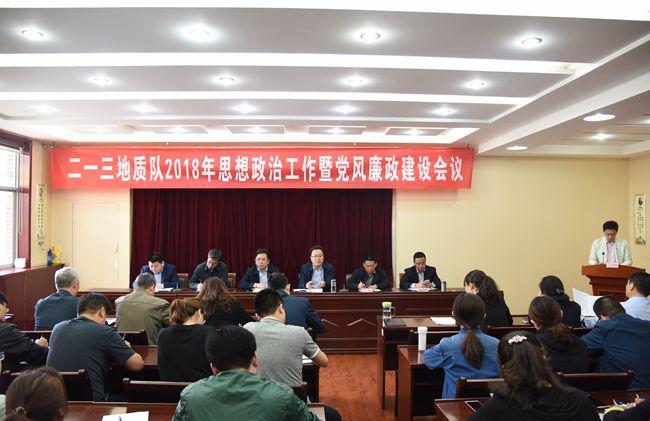 4月26日,二一三隊在二樓大會議室召開2018年思想政治工作暨黨風(fēng)廉政建設(shè)會議,隊領(lǐng)導(dǎo)、機關(guān)各科室負責(zé)人、二級實體負責(zé)人、各黨支部書記、團支部書記、黨支部兼職紀委委員、分工會主席共50余人參加了會議,隊長杜玉河主持會議。