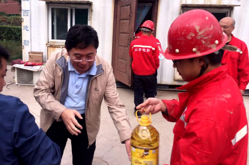 10月1日,二一三隊隊長杜玉河、黨委副書記趙江濤、施德剛副隊長帶領(lǐng)工會等部門工作人員深入襄汾縣象瑜谷地?zé)峋┕がF(xiàn)場,看望慰問節(jié)日期間堅守崗位的一線干部職工。