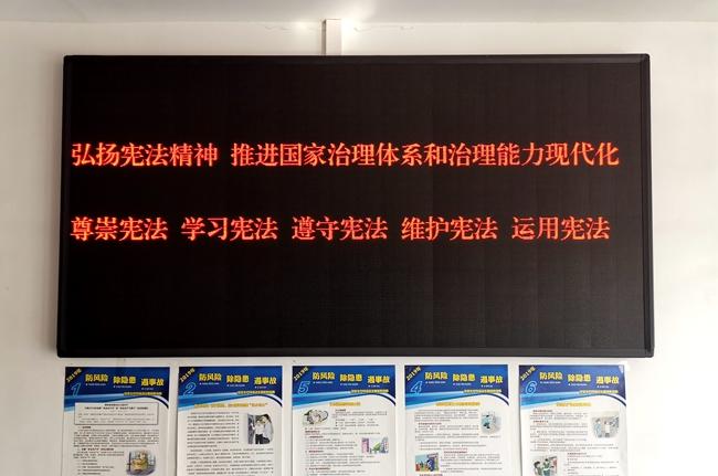 宣傳周內(nèi),通過張貼海報,電子屏播放宣傳標(biāo)語、圖片和資料,微信群轉(zhuǎn)發(fā)憲法宣傳片和公益廣告等方式,向全隊干部職工宣傳涵蓋我國憲法修改的重點內(nèi)容及其重大歷史意義,習(xí)近平總書記關(guān)于憲法的重要論述等方面內(nèi)容,提高干部職工對憲法知識的知曉率和普及率。