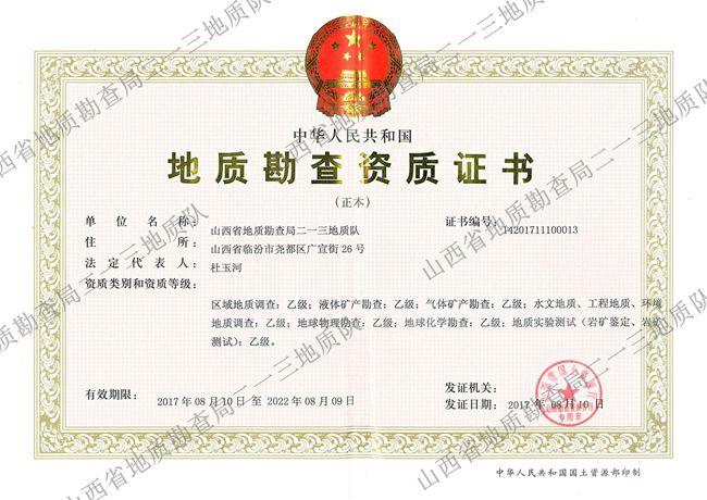 地質(zhì)勘查資質(zhì)證書(shū)(乙級(jí))