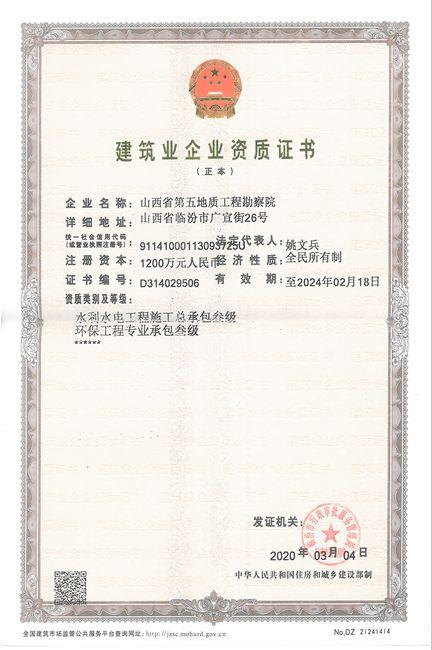 為貫徹地勘局“做強(qiáng)事業(yè),走強(qiáng)市場”的業(yè)務(wù)布局,二一三隊(duì)圍繞 “發(fā)揮優(yōu)勢、對接需求、支撐政府、服務(wù)社會(huì)”的工作思路,全力拓展服務(wù)領(lǐng)域,積極申辦了水利水電工程施工總承包叁級、環(huán)保工程專業(yè)承包叁級等資質(zhì),現(xiàn)資質(zhì)已通過審批獲得證書。