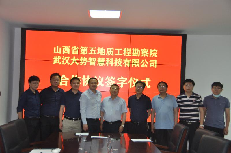 5月20日,五勘院與武漢大勢智慧科技有限公司簽署合作協(xié)議。五勘院院長姚文兵和武漢大勢智慧科技有限公司CEO黃先鋒分別代表雙方簽約。大勢智慧副總經(jīng)理周濟安、五勘院黨委書記趙江濤、總工程師呂福清及雙方有關(guān)人員參加了簽字儀式。